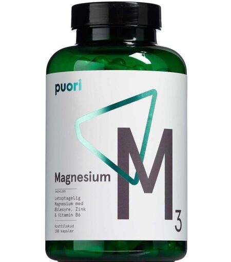 I Puori M3 anvendes udelukkende organiske former af magnesium, kombineret med æblesyre, zink og vitamin b6 som sikrer en høj optagelighed og bedst mulig effekt i kroppen. Magnesium indgår i over 300 enzymprocesser og sammen med vitamin B6 bidrager magnesium til, at mindske træthed og udmattelse, normal elektrolytbalance, et normalt energistofskifte samt normal muskelfunktion. M3 kommer i vegetabilske kapsler, som er udvundet af plantefibre. Dermed er Puori M3 et 100% vegansk kosttilskud. Dispenseringsform Kapsler. ...