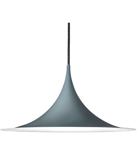 GUBI Semi Pendant Ø: 47 cm - Anthracite Glossy Grey Den klassiske Semi pendel fra danske GUBI er en unik pendel, der er baseret på to kvarte cirkler sat sammen ryg mod ryg. Den karakteristiske bueformede, emaljerede metalskærm skaber et diffust, konformt lys. Derfor er Semi pendelen ideel over et spisebord eller køkken bord, hvor man har behov for et godt arbejdslys. Med sit unikke, tidløse design og udvalg af farver og størrelser er Semi pendlen ekstremt alsidig og velegnet til mange rum. I 1980'erne opnåede pendlen stor succes og blev på det tidspunkt det bedst sælgende danske design og opnåede verdensomspændende anerkendelse og ikonisk status. Semi blev designet i 1968 som et produkt af det kreative partnerskab mellem Claus Bonderup og Torsten Thorup. Den opstod ud fra en reaktion mod de bløde organiske former, den såkaldte hyggelige æra, der dominerede Danmark på det tidspunkt. Bonderup og Thorup ønskede i stedet at fremstille en lampe, der indeholdt skarpe, rene linjer og en geometrisk form. Deres design blev indgivet til en konkurrence på Kunstakademiets Arkitektskole, og vandt førstepræmien. Design: Bonderup & Thorup Mål: Skærmhøjde: 23,5 Skærmomkreds: 47 Lyskilde: Fatning: E27 Watt: 60 Watt Ledningslængde: 2,2 Energikilde: Ikke inkluderet Materiale: Metal ...