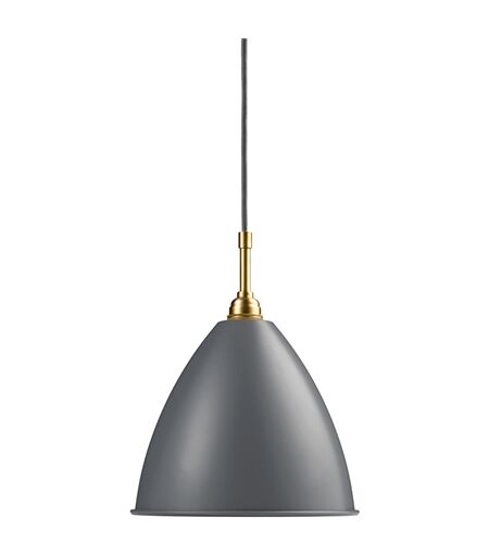 Bestlite BL9 Pendant Ø:21 cm M Brass base - Grey skærm Bestlite designet holder sig tæt til dets industrielle rødder og det originale design. Bestlite har permanente kollektioner både på Victoria og Albert Museet og Londons Designmuseum. Bestlite er elsket af både designere, arkitekter og design elskere gennem dens lange historie, som har gjort den til en nutidig klassiker. Design: Robert Dudley Best Mål: Ø: 21 cm Ledningslængde: 2 m. Info: Fatning: E14 Watt: Max: 30W - Halogen (lyskilde ikke inkluderet) Ledning: Tekstil ledning som matcher skærmfarven ( dog er krom sort og brass er gylden). Materiale: Messing med pulverlakeret skærm. ...