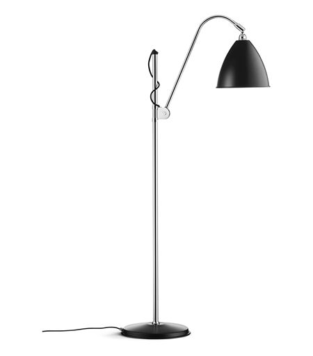 Bestlite BL3 Floor Lamp Ø:21 cm M Chrome Base - Black skærm Bestlite designet holder sig tæt til dets industrielle rødder og det originale design. Bestlite har permanente kollektioner både på Victoria og Albert Museet og Londons Designmuseum. Bestlite er elsket af både designere, arkitekter og design elskere gennem dens lange historie, som har gjort den til en nutidig klassiker. Design: Robert Dudley Best Mål: Ø: 21 cm H: 113-152 cm Info: Fatning: E14 Watt: Max: 30W - Halogen (lyskilde ikke inkluderet) Ledning: Tekstil ledning som matcher skærmfarven ( dog er krom sort og brass er gylden). Ledningslængde: 2 m. Materiale: Krom med pulverlakeret skærm. ...