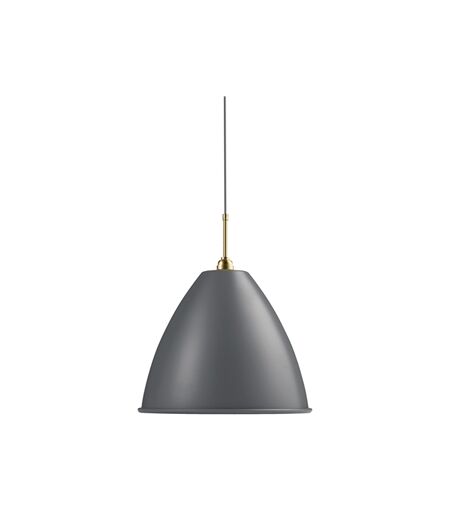 Bestlite BL9 Pendant Ø:40 cm L Brass base - Grey skærm Bestlite designet holder sig tæt til dets industrielle rødder og det originale design. Bestlite har permanente kollektioner både på Victoria og AlbertMuseet og Londons Designmuseum. Bestlite er elsket af både designere, arkitekter og design elskere gennem dens lange historie, som har gjort den til en nutidig klassiker. Design: Robert Dudley Best Mål: Ø: 40 cm Ledningslængde: 2 m. Info: Fatning: E27 socket Watt: Max: 52W - Halogen (lyskilde ikke inkluderet) Ledning: Tekstil ledning som matcher skærmfarven ( dog er krom sort og brass er gylden). Ledningslængde: 2 m. Materiale: Messing med pulverlakeret skærm. ...