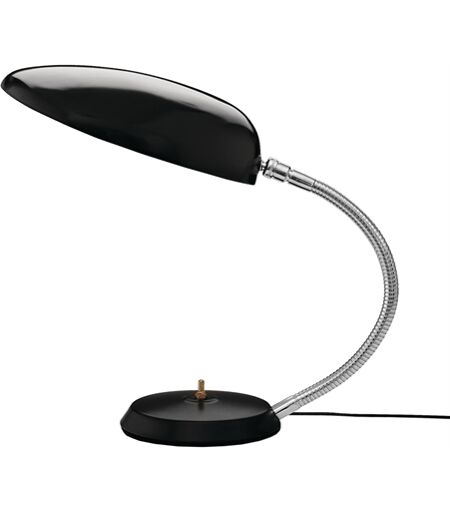 GUBI Cobra bordlampe - Jet-Black Designer: Greta M. Grossman Mål: H: 34 Vægt : 2,614 kg Tekniske specifikationer: Fatning: E14 fatning Watt: Max: 30W - Halogen Ledningslængde: 1,7 m. Afbryder: På lampefod (EnergiKilde medfølger ikke) OBS: Metalskærmen er drejbar med 360 ...
