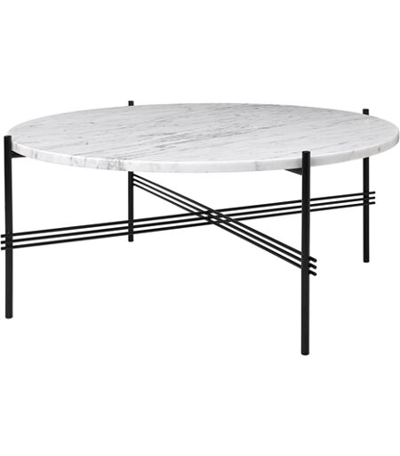 GUBI TS Coffee Table Ø:80 cm black base - White Carrara Marple top