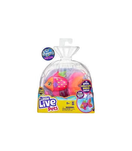 Little Live Pets' robotfisk opfører sig næsten som en rigtig fisk. Læg pakken med fisken i vand og den svømmer ud af skallen og begynder at svømme rundt. Lad som om du fodrer fisken med madflasken, og den følger efter flasken, når du trækker den gennem vandet (tæt på fisken). Eller hvorfor ikke tage fisken med i badekarret som badelegetøj Batterier: 3 stk AG13/LR44 (demo batterier medfølger) Indhold: 1 robotfisk, 1 fiskefoder og vejledning Mål: fisk ca 11 cm lang. Anbefalet fra 5 år Prisen refererer til 1 stk fået, Enten Pink eller Lilla (tilfældigt) ...