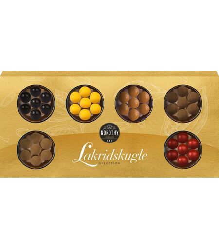 Nordthy Lakridskugle Selection er en indbydende gaveæske, der samler seks forskellige varianter af lækre lakridskugler. Hver kugle består af blød lakrids, overtrukket med chokolade og forskellige smagsnuancer – fra det klassiske til det frugtige og det intense. En oplagt gaveidé, når du vil overraske med en elegant æske fyldt med små fristelser. Specifikationer: Indhold; 240 gram ...