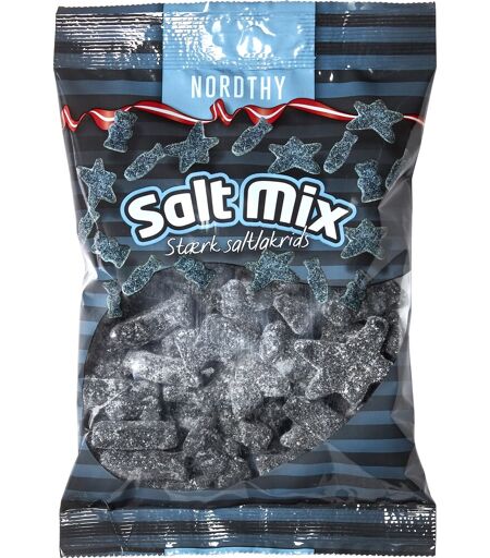 Salt Mix - guf til lakridselskeren Nordthy Salt Mix er en lækker lakridsblanding med stærk saltlakrids overtrukket med sukker. De små lakridser har forskellige og sjove udformninger og giver en god og stærk smag af saltlakrids, som giver en kraftfuld smagsoplevelse. En lækker blanding til både store og små og den store pose sikrer at der er nok til alle. Prøv den på mødebordet, som guf i hverdagen, til uddeling til kollegaerne, eller til fødselsdagen. Indhold: 800 g Stræk saltlakrids ...
