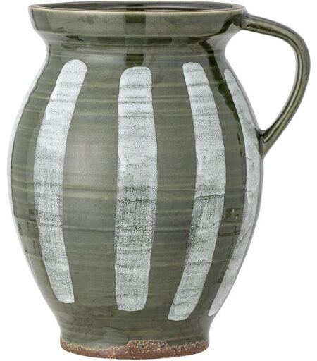Bloomingville Frigg Vase H: 26 cm - Stentøj Frigg vasen fra Bloomingville er en stentøjsvase med en smuk glasur i grøn og lyseblå. Vasen er håndlavet og udseendet kan derfor variere fra vase til vase. Vasen har en hank på siden, hvilket er en fin lille detalje der både skaber karakter og giver vasen et kandelignede design. Placér vasen på havebordet på en dejlig sommerdag eller lad den pynte i vindueskarmen hvor den kan sætte en flot buket i fokus. Design: Bloomingville Materiale: Stentøj Mål: L: 23 cm H: 26 cm B: 19 cm Farve: Grøn ...