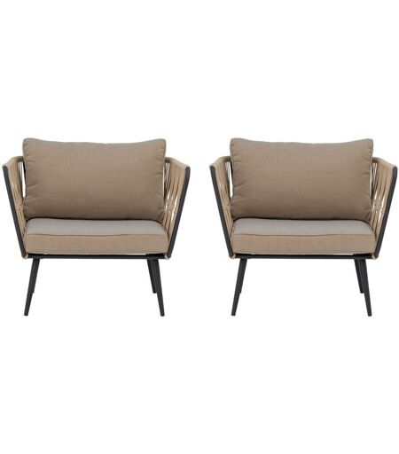 Bloomingville Pavone Loungestol 2 stk. SH: 40 cm - Brun Pavone Loungestol fra Bloomingville er et perfekt valg til haven. Stolene har et nordisk og enkelt udtryk. Stellet er lavet af pulverlakeret sort metal og sædet er lysebrunt håndvævet polyesterreb. Der medfølger en brun hynde med stof lavet af polyester, som øger komforten. Havestolen skaber en hyggeligt stemning og for at beskytte stoffet bedst muligt - undgå direkte sollys for at forlænge farvens holdbarhed. Bemærk: Leveres som sæt med 2 stole Designer: Bloomingville Materiale: Polyester og metal Mål: L: 87 cm H: 72 cm B: 68 cm Sædedybde: 60 cm Sædehøjde: 40 cm Højde armlæn: 72 cm Benhøjde: 28 cm Farve: Brun og sort Vedligeholdelse. Vaskeanvisning: Betræk vaskes ved 30 grader. Tørring: Lav varme Strygning: Lav varme Specifikationer: Udendørs brug: Ja Maks vægt: 130 kg. Stellet er frostsikkert og rebet er vandafvisende. Hynden er ikke vandafvisende og hvis den er placeret i direkte sollys kan der over tid ske falmning. ...