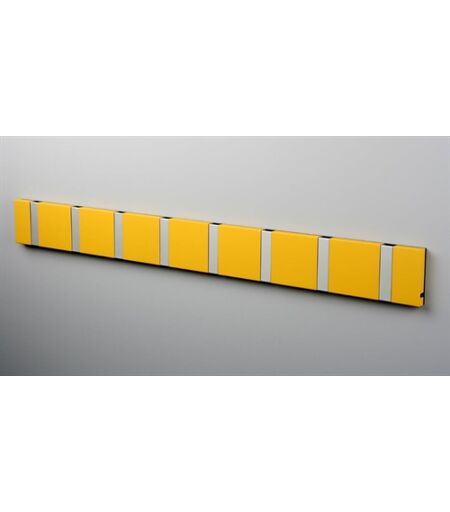 KNAX vandret 8 knagerække L: 79,2 cm - Summer / Grå Super flot og elegant knagerække fra KNAX. Knagerækken kommer i en flot gul farve og har grå knager. Den er stilfuld og dermed kan den bruges i mange indretninger. Brug knagerækken i entréen, stuen, soveværelset eller måske køkkennet. Knagerækken er 79,2 cm lang og 7,9 cm høj. Knagerækken har 8 knager. Alle knager er med vippefunktion. Designer: Thomas Harrit & Nicolai Sørensen Materiale: MDF Metal Farve: Gul Knager: Grå Mål: Længde: 79,2 cm Højde: 7,9 cm Dybde: 1,8 cm ...