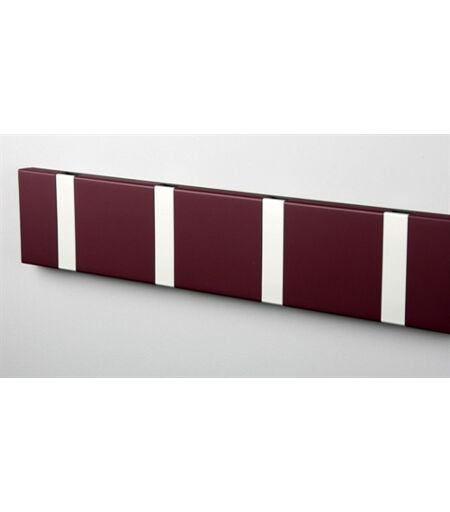 KNAX vandret 8 knagerække L: 79,2 cm - Purple / Grå Super flot og elegant knagerække fra KNAX. Knagerækken kommer i en flot lilla farve og har grå knager. Den er stilfuld og dermed kan den bruges i mange indretninger. Brug knagerækken i entréen, stuen, soveværelset eller måske køkkennet. Knagerækken er 79,2 cm lang og 7,9 cm høj. Knagerækken har 8 knager. Alle knager er med vippefunktion. Designer: Thomas Harrit & Nicolai Sørensen Materiale: MDF Metal Farve: Lilla Knager: Grå Mål: Længde: 79,2 cm Højde: 7,9 cm Dybde: 1,8 cm ...
