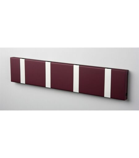 KNAX vandret 4 knagerække L: 39,6 cm - Purple / Grå Super flot og elegant knagerække fra KNAX. Knagerækken kommer i en flot lilla farve, med grå knager. Den er stilfuld og dermed kan den bruges i mange indretninger. Brug knagerækken i entréen, stuen, soveværelset eller måske køkkennet. Knagerækken er 39,6 cm lang og 7,9 cm høj. Knagerækken har 4 knager. Alle knager er med vippefunktion. Designer: Thomas Harrit & Nicolai Sørensen Materiale: MDF Metal Mål: Længde: 39,6 cm Højde: 7,9 cm Dybde: 1,8 cm ...
