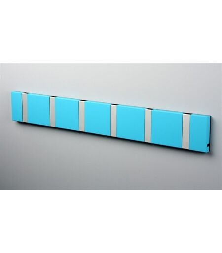 KNAX vandret 6 knagerække L: 59,4 cm - Turquoise / Grå Super flot og elegant knagerække fra KNAX. Knagerækken kommer i en flot turkis farve, og har grå knager. Den er stilfuld og dermed kan den bruges i mange indretninger. Brug knagerækken i entréen, stuen, soveværelset eller måske køkkennet. Knagerækken er 59,4 cm lang og 7,9 cm høj. Knagerækken har 6 knager. Alle knager er med vippefunktion. Designer: Thomas Harrit & Nicolai Sørensen Materiale: MDF Metal Mål: Længde: 59,4 cm Højde: 7,9 cm Dybde: 1,8 cm ...