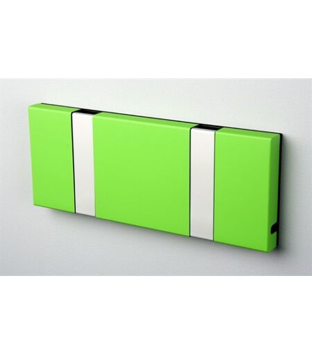 KNAX vandret 2 knagerække L: 19,8 cm - Lime / Grå Flot og elegant knagerække fra KNAX. Knagerækken er i en flot lime farve, med grå knager. Den er stilfuld og dermed kan den bruges i mange indretninger. Brug knagerækken i entréen, stuen, soveværelset eller måske køkkennet. Knagerækken er 19,8 cm lang og 7,9 cm høj. Alle knager er med vippefunktion. Designer: Thomas Harrit & Nicolai Sørensen Materiale: MDF Metal Farve: Lime Knager: Grå Mål: Længde: 19,8 cm Højde: 7,9 cm Dybde: 1,8 cm ...