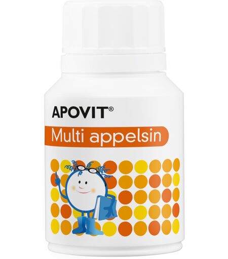 Apovit Multi Appelsin er et allround multivitamin med 12 vitaminer og 4 mineraler til børn fra 3 år. Produktet er uden jod, der ikke længere anbefales i multivitaminer til børn. ...