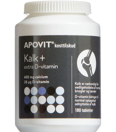 APOVIT Kalk + Extra D-vitamin Kosttilskud 180 stk