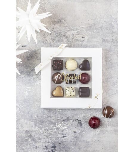 Christianfelder Star fra Xocolatl er smagfulde små chokoladefristelser med en lækker chokoladeskal og velsmagende fyld. De små chokoladefristelser har 9 delikate smagsvarianter med eksklusivt fyld af lakrids, nougat, saltkaramel, citron, Bailey, kirsebær, XO-karamel, 70% mørk chokoladeganache og marcipan m.Grand Marnier. Den perfekte lille julehilsen – smagfuld gave med omtanke De små chokoladelækkerier er flot præsenteret i en fin hvid rudeæske med bånd, som er ideel og velegnet som en sød lille julehilsen til både mænd og kvinder. Du kan f.eks. bruge gaveæsken som en ekstra lille julegave når dine venner, kollegaer og samarbejdspartnere skal forkæles lidt ud over det sædvandelige. Specifikationer: Indhold: 80 g Xocolatl – unik smagsintensitet og harmoni Xocolatl har et hyggeligt og velduftende chokoladeværksted i den sønderjyske by Christiansfeld, hvor de fremstiller chokolade af højeste kvalitet. Jagten på den sublime smag er deres altoverskyggende passion og deres chokolade er udviklet med særlig stor intensitet og harmoni og har helt unikke smagsnuancer, som giver dig en fantastisk smagsoplevelse. Xocolatl er kendt vidt og bredt for sin charme og sine stolte traditioner for godt håndværk og deres smagfulde chokoladelækkerier kombinerer de fineste råchokolader, sprøde mandler, knasende nødder, udsøgte frugtsmage og dejlig blød lakrids, som tilsammen skaber de skønneste små mundfulde der kan nydes året rundt. ...