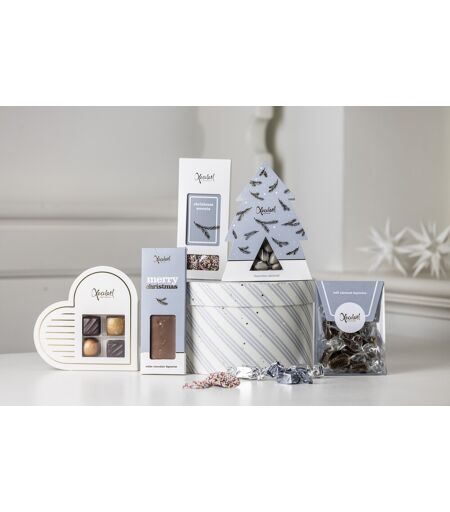 Gift Selection julepakken fra Xocolatl er en flot og velsmagende gavepakke med lækre chokoladefristelser. I gavepakken finder du en masse et fint miks af chokolade, karameller, snack og brændte mander. Alle lækkerierne leveres i en flot hatteæske. Gavepakken indeholder: Fyldte chokolader, 5 stk. Crispy snacks med chokolade og havsalt Bløde smørkarameller Chokoladebar med karamelchokolade Hasselnød med nougat Brændte mandler i juleknallert Lakridsmandler i juletræ æske Flot og lækker lille julegaveide Den flotte gavepakke er ideel og velegnet som en sød julehilsen til både mænd og kvinder. Du kan f.eks. bruge gavepakken som en fin lille julegave når dine venner, kollegaer og samarbejdspartnere skal forkæles lidt ud over det sædvandelige. Xocolatl: Håndlavet Dansk Chokolade Xocolatl tilbyder håndlavet chokolade skabt i hjertet af Christiansfeld. Chokoladen produceres under Cocoa Horizons-programmet og fremstilles med 100 % naturlige farver. Xocolatl kombinerer respekt for tradition og håndværk med modet til at eksperimentere med smag, konsistens og farver. Engagementet i miljømæssigt og socialt ansvar afspejles i den omhyggelige udvælgelse af råvarer, hvilket sikrer chokolade af høj kvalitet, der er produceret under Cocoa Horizons. ...
