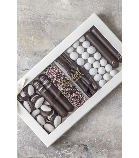 Old School Selection er en nostalgisk gaveæske fyldt med de chokoladefavoritter, vi alle kender fra julen – men løftet til Xocolatls håndlavede kvalitet. Æsken indeholder alt fra marcipanbrød med cognac og fyldte chokoladepoletter med mintkaramel til sprøde dronningemandler og snebolde med hasselnød. Perfekt som firmagave, værtindegave eller en særlig juleforkælelse til dem, der elsker den gode smag af tradition. Specifikationer: Indhold: 350 gram Xocolatl: Håndlavet Dansk Chokolade Xocolatl tilbyder håndlavet chokolade skabt i hjertet af Christiansfeld. Chokoladen produceres under Cocoa Horizons-programmet og fremstilles med 100 % naturlige farver. Xocolatl kombinerer respekt for tradition og håndværk med modet til at eksperimentere med smag, konsistens og farver. Engagementet i miljømæssigt og socialt ansvar afspejles i den omhyggelige udvælgelse af råvarer, hvilket sikrer chokolade af høj kvalitet, der er produceret under Cocoa Horizons. ...