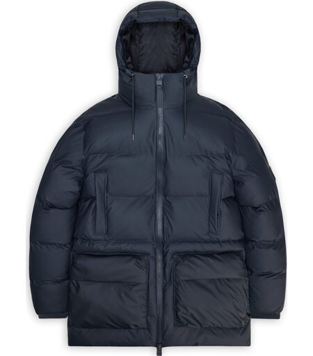 Rains Unisex Alta Long Puffer Cargo Jacket W3T4 Navy, XS