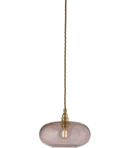 Ebb & Flow Horizon Pendant Lamp S Ø: 21 cm - Obsidian/Gold Smuk og æstetisk glaslampe fra Ebb & Flow. Glasset lampens skærm er udformet af, er mundblæst og håndskåret efter Ebb & Flows ønske og anvisninger. Lampen er meget betagende med dens form, den er enkel med stadig en dekoration i rummet, derudover har lampen en smuk snoet ledning, der tilføjer ekstras detalje til en ellers simpel lampe. Lampen kan bruges over spisebordet, i køkkenet eller entréen, den vil både passe ind i det klassiske, det moderne, samt det minimalistiske hjem. Lampen kommer i forskellige størrelser og farver, hæng lampen alene eller sammensæt den med andre lamper fra Horizon serien. Luftbobler kan muligvis forekomme, da produktet er mundblæst. Disses ses dog ikke som fejl, men som charme og er med til at give produktet karakter. Derudover kan der forekomme forskellighed i tykkelse og vægt, igen da produktet er mundblæst. OBS: miljøbillederne viser nødvendigvis ikke lampen i dens rigtige størrelse og farve, men dens udformning og mulige anvendelse Designer: Susanne Nielsen Materiale: Glas Metal Stof ledning 2 meter Mål: Lampeskærm: H: 14 cm Ø: 21 cm Baldakin: H: 7,8 cm Ø: 7,9 cm Vedligeholdelse: Tør af med en blød, fugtig klud. Tekniske specifikationer: E14 max 25W - LED - CFL (medfølger ikke) ...