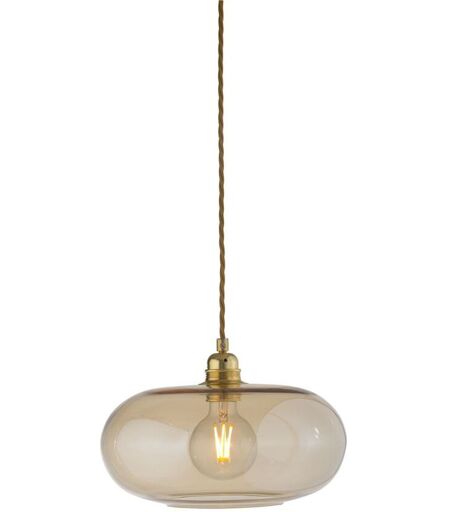 Ebb & Flow Horizon Pendant Lamp M Ø: 29 cm - Golden Smoke/Gold Smuk og æstetisk glaslampe fra Ebb & Flow. Glasset lampens skærm er udformet af, er mundblæst og håndskåret efter Ebb & Flows ønske og anvisninger. Lampen er meget betagende med dens form, den er enkel med stadig en dekoration i rummet, derudover har lampen en smuk snoet ledning, der tilføjer ekstras detalje til en ellers simpel lampe. Lampen kan bruges over spisebordet, i køkkenet eller entréen, den vil både passe ind i det klassiske, det moderne, samt det minimalistiske hjem. Lampen kommer i forskellige størrelser og farver, hæng lampen alene eller sammensæt den med andre lamper fra Horizon serien. Luftbobler kan muligvis forekomme, da produktet er mundblæst. Disses ses dog ikke som fejl, men som charme og er med til at give produktet karakter. Derudover kan der forekomme forskellighed i tykkelse og vægt, igen da produktet er mundblæst. OBS: miljøbillederne viser nødvendigvis ikke lampen i dens rigtige størrelse og farve, men dens udformning og mulige anvendelse Designer: Susanne Nielsen Materiale: Glas Metal Stof ledning 2 meter Mål: Lampeskærm: H: 18 cm Ø: 29 cm Baldakin: H: 7,8 cm Ø: 7,9 cm Vedligeholdelse: Tør af med en blød, fugtig klud. Tekniske specifikationer: E27 max 25W - LED - CFL (medfølger ikke) ...