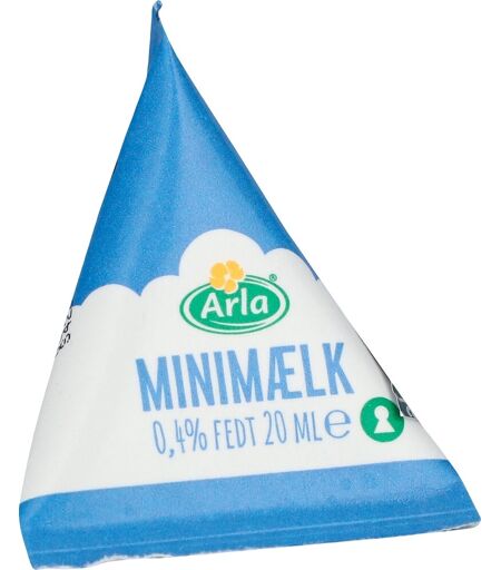 Arla kaffemælk i kartontrekanter - så har du altid frisk mælk til kaffen Arla minimælk har et fedtindhold på kun 0,4%. Mælken er pakket i praktiske trekantede brikker (jigger) med 20ml pr. stk. Kaffemælks-trekanterne passer perfekt til virksomheden med mange kaffedrikkere, for brikkernes størrelse passer lige til en kop kaffe. Kaffemælken er let at åbne, og de små brikker er lette at have med på mødebordet - i en skål eller på en bakke. Fordi Arla Minimælk er UHT behandlet, behøver kaffemælken ikke at blive opbevaret i køleskabet. UHT behandlet mælk er blevet opbevaret i 3-5 sekunder ved over 100°C. Det forhindrer mælken i at blive gammel og sur. UHT står for Ultra Høj Temperatur, der refererer til behandlingsprocessen. Ha' altid frisk mælk til kaffen lige ved hånden! Bemærk: Denne mælk er så tæt på den mælk, du køber i køledisken som muligt. Det betyder også, at holdbarheden ikke er ubegrænset. Derfor opfordrer vi til, at du køber oftere og mindre portioner af gangen. ...