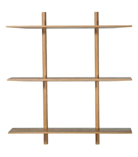 MUUBS Hylde Noir Natural M 90x100 cm - Eg Hylde Noir fra MUUBS i naturligt lyst egetræ. Hyldesystemet består af 3 hylder, som er designet med underfræste kanter, hvilket er med til at give hylderne i egetræ et helt unikt udtryk, som oser af håndværkstraditioner. Det væghængte reolsystem er ideel i mange af hjemmets rum. Hæng den f.eks. op i køkkenet og udstil dit yndlingsservice, eller hæng den op i stuen og dekorer med pyntegenstande og et par coffee table books. Den passer hurtigt ind i forskellige hjem, lige meget om ens stil er meget naturlig eller mere rå. Designer: MUUBS Farve: Natur Materiale: Egetræ Mål: H: 100 cm B: 90 cm D: 20 cm ...