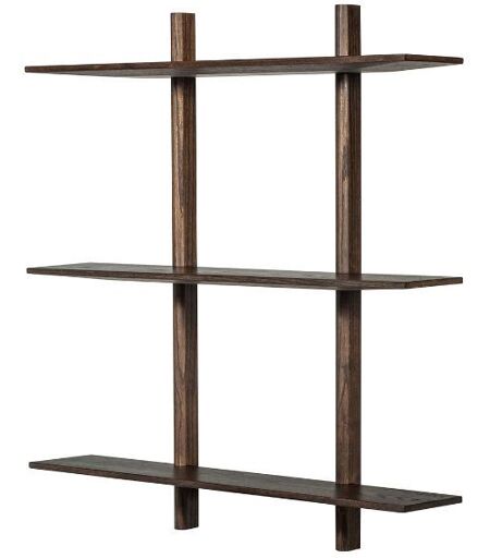 MUUBS Hylde Noir Natural M 90x100 cm - Mørkbejdset Olie Hylde Noir fra MUUBS i mørkbejdset eg. Hyldesystemet består af 3 hylder, som er designet med underfræsede kanter, hvilket er med til at give hylderne i egetræ et helt unikt udtryk, som oser af håndværkstraditioner. Det væghængte reolsystem er ideel i mange af hjemmets rum. Hæng den f.eks. op i køkkenet og udstil dit yndlingsservice, eller hæng den op i stuen og dekorér med pyntegenstande og et par coffee table books. Den passer hurtigt ind i forskellige hjem, uanset om ens stil er meget naturlig eller mere rå. Designer: MUUBS Farve: Mørkebrun Materiale: Egetræ Mål: H: 100 cm B: 90 cm D: 20 cm Specifikationer: Maks. belastning 5 kg. ...