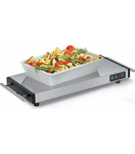 Alba mini varmeplade, 40x20 cm. Alba Mini varmeplade er perfekt til at holde maden varm, til store og små begivenheder. Du sætter stikket i kontakten og kun 6 minutter senere er pladen varmet op til 80 grader, så har du en varm plade der er klar til at holde din mad varm. Varmepladen er lavet i børstet stål, så du kan trygt stille din varmeplade på bordet eller andre steder du ønsker. Derudover er håndtaget lavet af aluminium, der giver ”cool touch” så du kan flytte din varmeplade rundt selvom den stadig er varm. Dermed kan du have din mad på den ønskede temperatur gennem hele festen. Specifikationer: Varmeplade i børstet stål Holder maden varm i op til 60 min. Måler 40X20 cm. 6 cm høj Afkølede håndtag i aluminium – cool touch Opvarmning på 6 minutter – 80 grader 1100W. Aftagelig ledning 80 grader varm 3 års garanti ...
