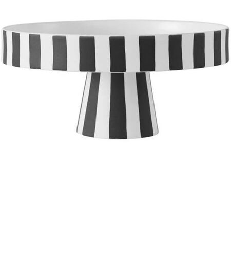 OYOY Toppu Fad Ø: 20 cm - Hvid/Sort Toppu fadet fra OYOY er både stilfuldt og smukt og giver med sit grafiske design indretningen et elegant udtryk. Det minimalistiske udtryk med de stringente striber harmonerer smukt med vasens formsprog, hvor den formår at skabe blikfang og vække beundring på fineste vis. Fadet står på en fod og kan benyttes i et væld af indretningsmuligheder - lige fra opbevaring af små pyntegenstande og smykker på badeværelset til servering af kager eller opbevaring af frugt på køkkenbordet. Rengøres nemt med vand og tørres med en tør klud. Design: OYOY LIVING Materiale: 100% keramik (håndlavet) Mål: Ø: 20 cm H. 9 cm ...