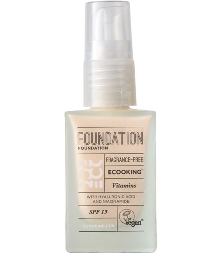 Ecooking Foundation - 04 Almond er en flydende foundation, der med sin silkebløde og lette kashmir-konsistens charmer sig ind på din hud, hvor den fordeler sig jævnt og naturligt uden at tilstoppe porerne. Mens den ligger diskret på huden, arbejder indholdet af fugtgivende hyaluronsyre, nærende niacinamid og blødgørende E-vitamin for at give din hud masser af pleje – samtidig med at solfaktor 15 værner mod solens skadelige stråler. Denne foundation har medium dækkeevne, men kan give fuld dækning, hvis du bygger den op lag for lag. Den giver let, naturlig glød og forbliver flot hele dagen, selv når du har det varmt og sveder. Formuleret til at undgå, at den smitter af på tøj og andre tekstiler. Fordele: Foundation Flydende Anbefales til alle hudtyper Medium dækkeevne Silkeblød og let konsistens Virker ikke tilstoppende Anvendelse: Brug en foundationbørste til at fordele foundation jævnt i ansigtet Påfør med cirkulære bevægelser og blend den ind i huden Start fra midten af ansigtet og arbejd dig udad ...