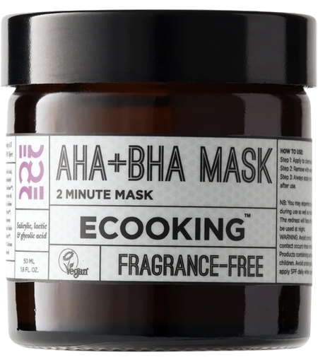 Ecooking AHA+BHA Mask er en ultraeffektiv maske, som indeholder hele 26 % AHA-syrer, fordelt på mælke- og glykolsyre, og 2 % salicylsyre, et multitalent af en BHA. ECOOKING har også tilføjet en bred palet af frugtekstrakter fra appelsiner, citroner, blåbær, sukkerrør og sukkerløn, som ligeledes indeholder naturlige syrer. Når de mange syrer arbejder sammen, skaber de hurtigt resultater. De polerer huden, så døde hudceller forsvinder og tager eventuelle pigmentpletter med i faldet. Dette stykke arbejde mindsker ikke bare mørke plamager, men også urenheder, fine linjer og porer. Derudover bliver blodcirkulationen og cellefornyelsen stimuleret, hvilket giver øjeblikkelig naturlig glød og gør huden blød. Og når du følger op med fugt, har du tilmed gjort det meget lettere for din hud at tage imod de nærende, fugtgivende ingredienser. AHA+BHA Maske indeholder bl.a.: Frugtekstrakter fra appelsiner, citroner, blåbær, sukkerrør og sukkerløn, som indeholder naturlige syrer, der eksfolierer huden og stimulerer cellefornyelsen for at blødgøre og udjævne huden. Naturlig mælkesyre, en AHA, der fjerner døde hudceller på yderste hudlag, så huden bliver mere ensartet. Derudover stimulerer den cellefornyelsen, hvilket er med til at reducere pigmentpletter. Salicylsyre, en BHA, som opløser de yderste hudceller, hvilket trigger huden til at regenerere. Salicylsyre kan også eksfoliere helt ned i porerne, hvilket er med til at formindske dem. Glykolsyre, den mindste type AHA, som virker eksfolierende og booster cellefornyelsen. Fordele: Ansigtsmaske Indeholder 26 % AHA-syrer fordelt på mælke- og glykolsyre Indeholder 2 % salicylsyre, en BHA Eksfolierer huden og fjerner døde hudceller Stimulerer cellefornyelsen Mindsker pigmentpletter, urenheder og fine linjer Forbedrer hudens blodcirkulation og naturlige glød Indeholder frugtekstrakter fra appelsiner, citroner, blåbær, sukkerrør og sukkerløn Naturlige syrer blødgør og udjævner huden Dermatologisk testet, parfumefri og vegansk Anvendelse: Du kan bruge AHA+BHA Masken maks. 1 gang om ugen Når du har påført masken vil du måske mærke at det prikker og stikker i huden som også kan være rød bagefter. Derfor må du ikke gå ud i solen efter brug og af samme årsag anbefaler vi at du anvender masken om aftenen og bruger solcreme dagen efter. TRIN 1: Rens din hud og smør derefter masken på i et jævnt lag – hold god afstand til øjne og mund. Lad den sidde i 2-3 minutter. TRIN 2: Fjern forsigtigt masken med lunkent vand. Rens huden grundigt og neutralisér masken med dit foretrukne renseprodukt. TRIN 3: Slut af med at give din hud fugt. Eventuelt med Fugtmaske Parfumefri som også kan fugtbooste huden natten over. Ingrediensliste: Aqua, Lactic Acid, Glycolic Acid, Hydroxyethyl Acrylate/Sodium Acryloyldimethyl Taurate Copolymer, Pentylene Glycol, Squalane, Sodium Hydroxide, Salicylic Acid, Polysorbate 60, Gluconolactone, Sodium Dehydroacetate, Sodium Benzoate, Vaccinium Myrtillus Fruit Extract, Sorbitan Isostearate, Saccharum... ...