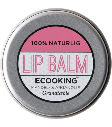 Ecooking Lip Balm Pomegranate er en plejende lip balm, der med bl.a. E-vitamin og arganolie plejer dine læber og gør dem bløde og blanke. Ideel til tørre og sprukne læber. Lip Balm Granatæble indeholder bl.a.: Økologisk arganolie Økologisk olivenolie Økologisk mandelolie Naturlig bivoks Naturligt E-vitamin Økologisk sheabutter Fordele: Plejende lip balm med granatæble Gør læber bløde og blanke Velegnet til tørre og sprukne læber Indeholder naturlige og økologiske olier Dermatologisk testet Anvendelse: Smør Lip Balm Granatæble på læberne efter behov Ingrediensliste: Butyrospermum Parkii Butter, Glyceryl Rosinate, Ricinus Communis Seed Oil, Olea Europaea Oil Unsaponifiables, Prunus Amygdalus Dulcis Oil, Cera Alba, Olea Europaea Fruit Oil, Rhus Verniciflua Peel Cera/Rhus Succedanea Fruit Cera, Argania Spinosa Kernel Oil, Ascorbyl Palmitate, Tocopherol, Parfum, Limonene, Citrus Aurantium Peel Oil, Citral, Vanillin, Pelargonium Graveolens Flower Oil, Citronellol, Linalool, Terpineol, Citrus Limon Peel Oil, Geraniol, Linalyl Acetate, Pinene, Terpinolene, Mica, CI 77891, CI 75470 ...