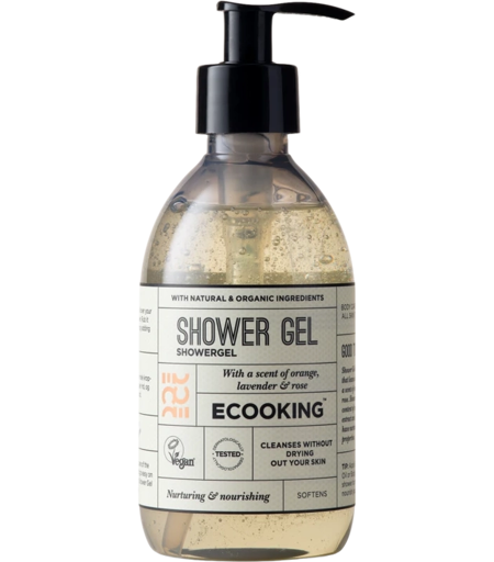 Ecooking Shower Gel er en showergel, som er en rensende og plejende sæbe, der efterlader huden ren med en frisk duft af orange, lavendel og rose. Denne showergel har et højt indhold af økologisk glycerin, og agurkeekstrakt, der har blødgørende og glansgivende egenskaber, og derfor kan du med fordel anvende den som shampoo til håret. **Fordele: Showergel Rensende og plejende Efterlader huden ren Frisk duft af orange, lavendel og rose Indeholder økologisk glycerin Indeholder agurkeekstrakt Blødgørende og glansgivende egenskaber Kan anvendes som shampoo til håret Vegansk og dermatologisk testet Anvendelse: Brug i badet Doser mængden af sæbe efter behov Skyl af med vand Til alle hudtyper Ingrediensliste: Aqua, Aloe Barbadensis Leaf Water, Disodium Laureth Sulfosuccinate, Cocamidopropyl Betaine, Cucumis Sativus Fruit Water, Sodium Lauroyl Sarcosinate, Sodium Lauryl Sulfoacetate, Glycerin, Sodium Chloride, Citric Acid, C12-15 Pareth-12, Sodium PCA, Niacinamide, Sodium Levulinate, Potassium Sorbate, Helianthus Annuus Seed Extract, Sodium Benzoate, Phytic Acid, Parfum, Citrus Aurantium Peel Oil, Limonene, Linalool, Linalyl Acetate ...