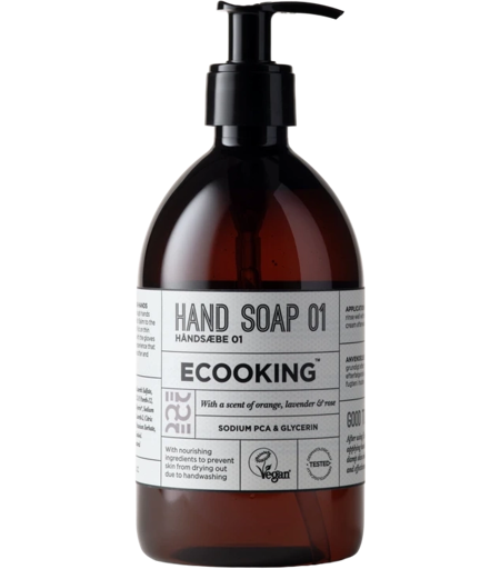 Ecooking Hand Soap er en håndsæbe der renser uden at udtørre dine hænder, fordi den er lavet med plejende sodium PCA og glycerin, der fugter og blødgør huden. Denne lækre og velduftende håndsæbe har en frisk duft af orange, lavendel og rose, så hænderne ikke blot efterlades bløde og rene, men også med en skøn duft. Fordele: Håndsæbe Flydende Renser uden at udtørre Fugtgivende Blødgørende Skøn duft Anvendelse: Vask hænderne i Håndsæbe Skyl grundigt efter med rindende vand. ...