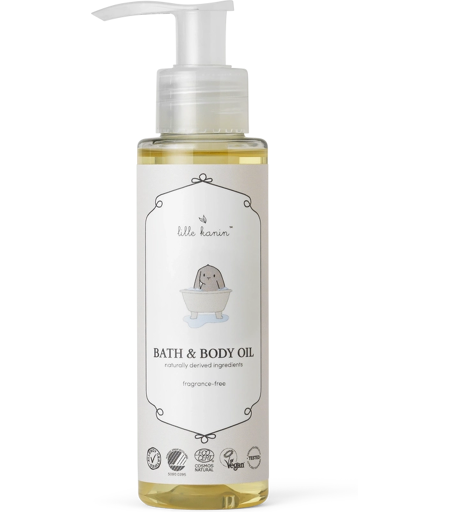 Lille Kanin Bath og Body Oil er en vidunderlig og mild olie til din baby. Den er beriget med fugtgivende og nærende olier fra økologiske solsikkefrø, mandler, jojobakerner og argan, som sammen med E-vitamin sørger for at give den fine, sarte babyhud intensiv pleje, for at holde den lækker blød, smidig og beskyttet mod udtørring. Lille Kanin Bath og Body Oil har flere anvendelsesmuligheder. Den kan med fordel påføres fugtet hud, som gør, at den trænger bedre ind, hvor den hjælper med at holde huden blød og fugtet, ligesom den også kan tilføjes vandet i badekarret med samme formål. Døjer din baby med arp, kan man også fordele et par dråber olie i hovedbunden, lade den virke et par minutter, timer eller natten over, for derefter forsigtigt at kæmme den for arp med en tættekam. Denne skønne olie er tilmed velegnet at bruge til voksne, hvor den blandes med den almindelige bodylotion/creme, hvis huden indimellem har behov for ekstra fugt, ligesom gravide også kan nyde godt af at forkæle den til tider stramme hud på en voksende mave. Du kan med god samvittighed anvende denne babyolie til både baby og dig selv. Den er fri for parfume og indeholder kun ingredienser med 100 % naturlig oprindelse. Den er både svanemærket, AllergyCertified, samt anbefalet af Asthma Allergy Nordic, ligesom den også er Ecocert COSMOS Natural og vegansk. Kort sagt, er Lille Kanin Bath og Body Oil ren kærlighed på flaske til både hud og baby. Fordele: Bade- og babyolie Flere anvendelsesmuligheder Beriget med fugtgivende og nærende olier, samt E-vitamin Gør huden blød og smidig Modvirker udtørring God til både babyer, voksne og gravide 100 % naturlig oprindelse Dermatologisk testet Parfumefri Anbefalet af Asthma Allergy Nordic AllergyCertified Svanemærket Ecocert COSMOS Natural Vegansk Anvendelse: Kan blandes med en bodylotion/creme for ekstra fugt Tilføj nogle dråber til vandet i badekarret Kan også påføres fugtet hud, hvor den trænger godt ind i huden og giver intens pleje hos både baby, voksne og gravide Fordel nogle dråber i hovedbunden, lad virke et par minutter, timer eller natten over, og kæm herefter forsigtigt for at fjerne arp Ingrediensliste: Helianthus Annuus Seed Oil, Prunus Amygdalus Dulcis Oil, Simmondsia Chinensis Seed Oil, Argania Spinosa Kernel Oil, Tocopherol. ...