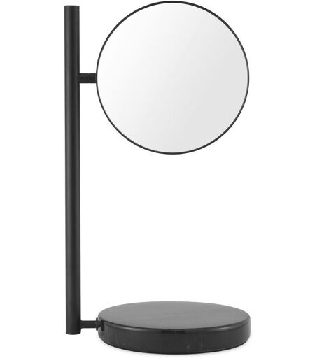 Normann Copenhagen Pose Spejl H: 39 cm - Sort Smukt og praktisk spejl fra Normann Copenhagen. Designet er sammensat af gentagende cirkulære elementer. Rund marmorfod bringer en solid robusthed til udtrykket samt skaber en dekorativ flade til smykker og andre mindre genstande. Spejlet svæver over fode og skaber kontrastfuldt look. Pose spejlet er inspireret af det klassiske forstørrelsesglas. På den ene side har du et almindeligt glasspejl, og på den anden side er der et 3x forstørrelsesspejl. Dette gør Pose spejlet helt ideelt til morgen- og aftenrutinerne på badeværelse eller i soveværelset. Spejlet kan således snurres 360, hvilket gør det hurtigt og nemt at skifte mellem de to sider. Marmor er en natursten, farve og mønster kan variere fra produkt til produkt. Designer: Simon Legald Materialer: Marmor, spejlglas og pulverlakeret stål. Mål: Højde: 39 cm Bredde: 21 cm Farve: Sort Vedligeholdelse: Tør af med en fugtig klud. ...