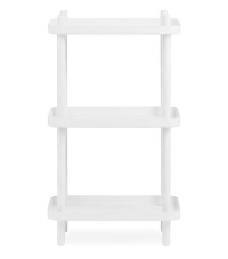 Normann Copenhagen - Block Table - Hvid Dette Block rullebord og reol fra Normann Copenhagen kan bruges overalt i hjemmet. Dens afrundede former og mødet mellem håndværk og industri giver bordet et særligt udtryk. Block er et funktionelt og charmerende design, der kan bruges overalt i hjemmet. Brug fx Block rullebord som serveringsvogn eller sidebord ved sofaen, eller måske i køkkenet, ved siden af sengen, til hjemmebaren eller på børneværelset, og benyt Block reolen til f.eks. opbevaring i entréen, i køkkenet eller på badeværelset. Den leveres fladpakket og samles nemt uden værktøj. Samlemanual er inkluderet. Bæreevne per hylde: maks 10 kg Hjulene på Block rullebord er farvet så de matcher bordets bakker og kan dreje 360 grader. En sort nylonring om hjulet tilføjer stabilitet og et godt greb Mål: H: 87 cm L: 50 cm D: 35 cm ...