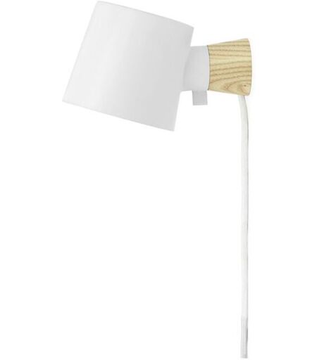 Normann Copenhagen Rise Væglampe - Hvid Flot væglampe fra Normann Copenhagen. Rise lampen har et enkelt, nordisk og charmerende udtryk. Brug den som natlampe i soveværelset, læselampe i stuen eller der hvor du står og mangler lidt ekstra lys i hverdagen. Lampen har en 2 m lang stofledning med kontakt. Designer: Marianne Andersen Materiale: Pulverlakeret stål Ask Mål: H: 9,7 cm L: 17 cm Ø: 10 cm Tekniske specifikationer: E14 2W LED anbefales Vægt: 0,5 kg ...