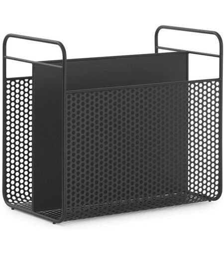 Normann Copenhagen Analog Magasinholder H: 36,5 cm - Sort Magasinholderen fra Normann Copenhagen har et stilrent og tidsløst design. Den findes i både sort og hvid. Med sit smukke minimalistiske udseende passer den ind i alle stilarter og lader tryksager komme til deres ret. Placér den fine magasinholder i stuen, soveværelset eller på kontoret, som en ekstra lille detalje i rummet. Simon Legald har kombineret et lille oprør i en digital verden, med inspiration fra 90'ernes edb-udstyr. Resultatet er flotte hulmønstrede sider, der afspejler edb-udstyrets perforering til nedkøling af teknikken. Designer: Simon Legald, 2016 Materialer: Pulverlakeret stål Mål: H: 36,5 cm L: 40 cm D: 23,5 Farve: Sort Vedligeholdelse: Rengøres med en fugtig klud. ...