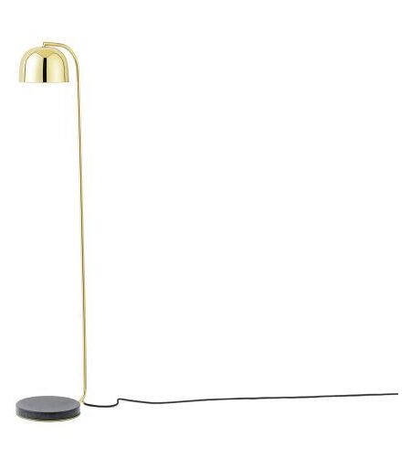 Normann Copenhagen Grant gulvlampe - brass Den smukke og tidsløse Grant gulvlampe fra danske Normann Copenhagen, har en inderskærm som gør at lampen ikke blænder, derudover giver den lukkede skærm, et utroligt godt lys. Lampen vil kunne lyse de mørke hjørner i din stue, værelse eller entre op. De udsøgte materialer granit og stål gør at lampen kan gå til mange stilarter, både til det minimalistiske og industrielle look. Mål: Højde: 136 cm Ø: 24 cm Vægt: 6,5 kg Materiale: Stål Granit Lyskilde: LED 4kWh/1000h ...
