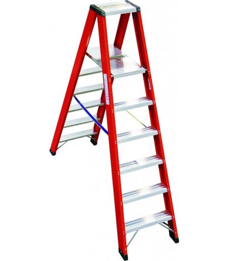 Wienerstige af glasfiber, 2,36 m Wienerstige fremstillet med vanger i glasfiber og trin i aluminium med ekstra stor platform. Stigen leder ikke strøm og er godkendt til 20.000 volt/cm2. Trinene er ergonomiske med skridsikker overfladebehandling og nittet til vangerne. Specifikationer: Arbejdshøjde: ca. 4,36 meter Højde til arbejdsplatform: 2,36 meter Antal trin: 2x10 trin Vægt: 23 kg Kraftige perlonremme forbinder stigedelene Maks. belastning: 150 kg EN131 godkendt ...