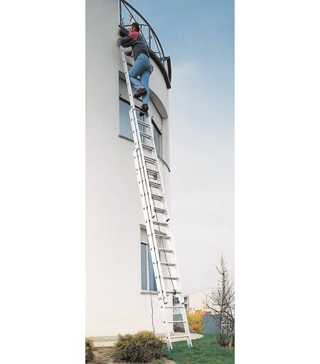 3-delt hejsestige, Super Proff Hejsestige som består af 3 stigeelementer til de høje og krævende opgaver. Stigens længde justeres med snoretræk som er forbundet delene imellem. Fremstillet med ekstruderede lukkede vangeprofiler, som giver ekstra styrke og skridsikre stigesko, som giver et solidt fæste. Forsynet med traditionelle trin 30 x 30 mm. med skridsikker overfladebehandling. Specifikationer: Arbejdshøjde: Ca. 9,97 meter Maks. længde skydestige: 8,97 meter Transportlængde: 3,64 meter Antal trin: 3x12 trin Trinafstand: 280 mm Udvendig stigebredde: 37/44/51 mm Vægt: 30 kg EN131 godkendt - Maks. 150 kg ...