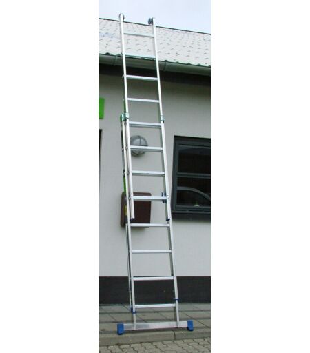 2-delt kombistige, Proff Stige i aluminium som består af 2 stigeelementer, som gør den anvendelig både som wienerstige og som skydestige. Justeres i længden/højden trin for trin og leveres med stabilisator, som gør stigen mere sikker og stabil at anvende. Stigen er fremstillet med lukkede vanger, og er forsynet med traditionelle trin 30x30 mm med skridsikker overfladebehandling. Specifikationer: Skydestige maks.: 4,20 m Længde under transport: 2,50 m Højde, wienerstige: 2,30 m Arbejdshøjde, wienerstige: 3,30 m Antal trin: 2 x 8 trin Udvendig stigebredde: 42,5/49 cm Trin: 30x30 mm EN131 godkendt - max. belastning: 150 kg. Vægt: 11,70 kg ...