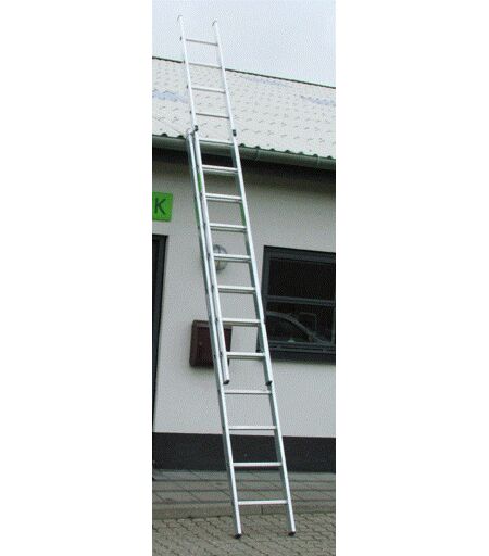 2-delt skydestige, Super Proff Meget lang 2-delt skydestige fremstillet i aluminium, som består af 2 stigeelementer. Fremstillet med lukkede vanger for ekstra styrke og traditionelle 30 x 30 mm. trin med skridsikker overfladebehandling. Skydestigen justeres i højden ved manuel løft af den øverste stigedel, som er forsynet med tophjul. Udstyret med skridsikre stigesko. En klassisk stige som er kompakt under transport og velegnet til alment arbejde - Inspektion, vedligeholdelse og i industrien Specifikationer: Arbejdshøjde: Ca. 10,80 meter Maks. længde skydestige: 9,80 meter Transportlængde: 5,35 meter Antal trin: 2x18 trin Trin: 30x30 mm Trinafstand: 280 mm Udvendig stigebredde: 37/44 cm Vægt: 36,30 kg EN131 godkendt - Maks. 150 kg ...