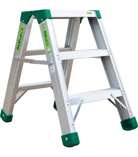 Arbejdsplatform i eloxeret aluminium - Arbejdshøjde 2,75 meter Arbejdsplatform med platformstr. 40 x 24 cm med høj stabilitet og en super kvalitet. Fremstillet i eloxeret aluminium, med håndvenlige vanger. Overfladebehandlingen sikre altid rene hænder. Konstrueret med nittede trin/vange samlinger og udstyret med skridsikre stigesko. Stigen har derudover afslutninger i blødt gummimateriale og foldes nemt sammen efter brug. Specifikationer: Arbejdshøjde: Ca. 2,75 meter Antal trin: 2x3 trin Højde til øverste trin: 75 cm Platform str. 40x24 cm Vægt: 3,0 kg Maks. belastning: 150 kg Platformen er godkendt ifølge EN14183 ...