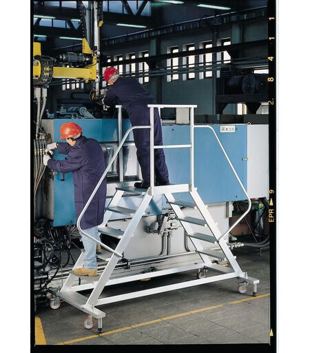 Mobil arbejdstrappe med dobbelt trappeadgang Platform som har trappeopgang på 2 sider og er især anvendelig som overgangsplatform på faste installationer. Overgangsplatformen er bl.a. velegnet til monteringsarbejde. Leveres med 20 cm dybe trin med skridsikker overfladebehandling og med låsbare Ø125 mm hjul, som gør trappen flytbar og nem at transportere. Praktisk arbejdstrappe med god ergonomi Specifikationer: Arbejdshøjde: Ca. 2,80 meter Højde til platform: 138 cm Længde ved installation: 2,41meter Bredde ved installation: 1,16 meter Antal trin: 2x6 stk Platformsstørrelse: 60x80 cm Vægt: 45 kg EN 131 godkendt ...