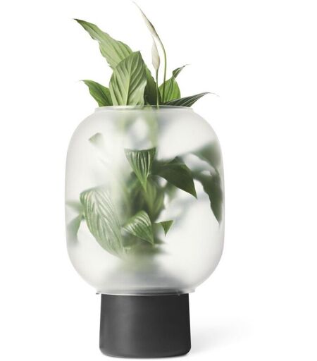 Gejst Nebl Urtepotteskjuler Big H: 30 cm - Sort Nebl urtepotteskjuleren fra Gejst er designet af Michael Rem. Urtepotteskjuleren er en hyldest til den fredfyldte og stille tåge, som er hvad Michael Rem lod sig inspirere af, da han designede Nebl urtepotteskjuleren. Urtepotteskjuleren består af en base af keramik og et stykke mundblæst, materet glas. Urtepotteskjuleren er nem at anvende, planten placeres ned i basen og glasses sættes over basen. Glassets åbninger har forskellige størrelser, og kan begge placeres på basen, alt efter om der ønskes en høj eller lavere placering på basen. Det giver variation i anvendelsen af urtepotteskjuleren, men er også praktisk alt efter hvilken plante der er placeret i basen, for at skabe de mest optimale betingelser for plantens trivsel. Designer: Michael Rem, 2017 Materialer: Keramik, glas Mål: Glas: Højde: 30 cm Diameter, Ø: 26 cm Base: Højde: 13 cm Diameter, Ø: 14,5 cm Farve: Sort ...