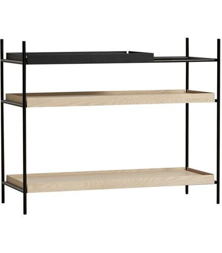 Woud Tray Shelf Low H: 81 cm - Black Painted & White Pigmented Oak