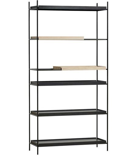 Woud Tray Shelf High H: 201 cm - White Pigmented Oak & Black Painted Oak